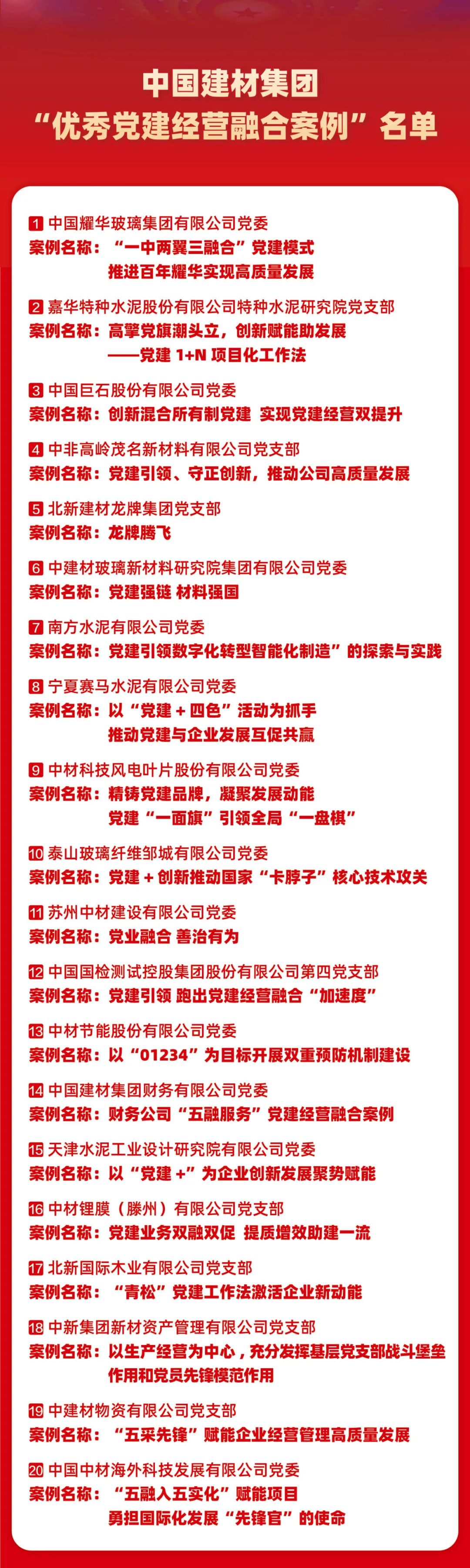 中國建材集團召開黨建經營融合推進會暨“十佳案例”“優秀案例”發布會