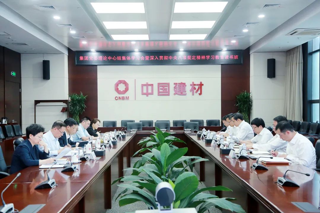 5月20日,中國建材集團黨委舉辦深入貫徹中央八項規定精神學習教育讀書班(第二期)暨理論中心組集體學習會,原原本本學習領會《習近平關于加強黨的作風建設論述摘編》《黨的十八大以來深入貫徹中央八項規定精神的成效和經驗》以及中央有關文件精神。集團黨委書記、董事長周育先主持會議、帶頭領學并講話。集團黨委班子成員分別領學并交流學習體會。